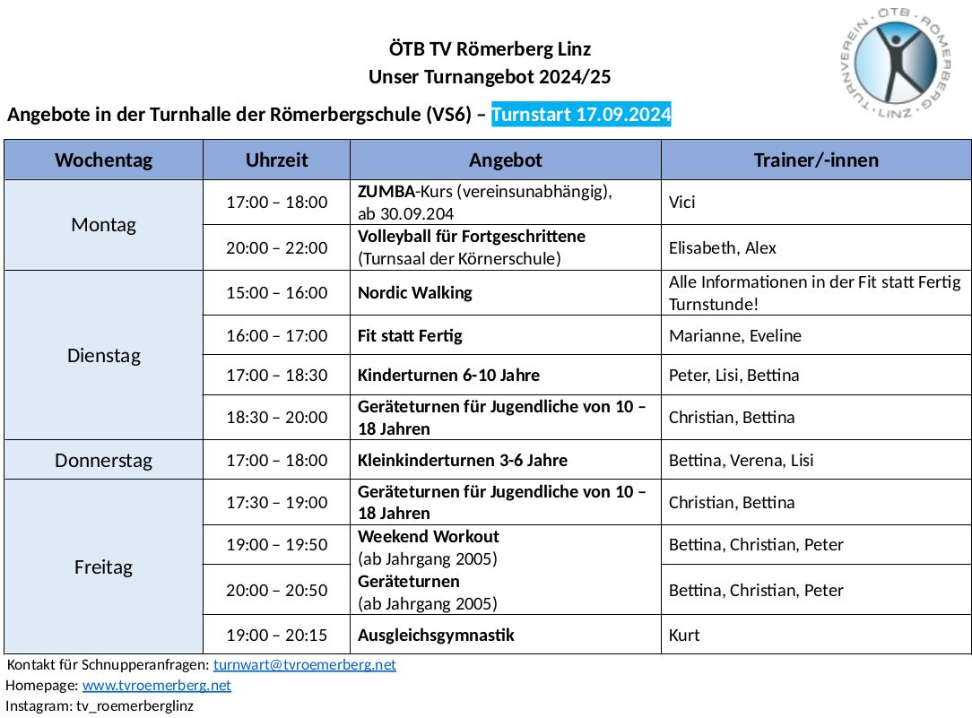 Alle Anfragen bezüglich Turnstunden an turnwart@tvroemerberg.net